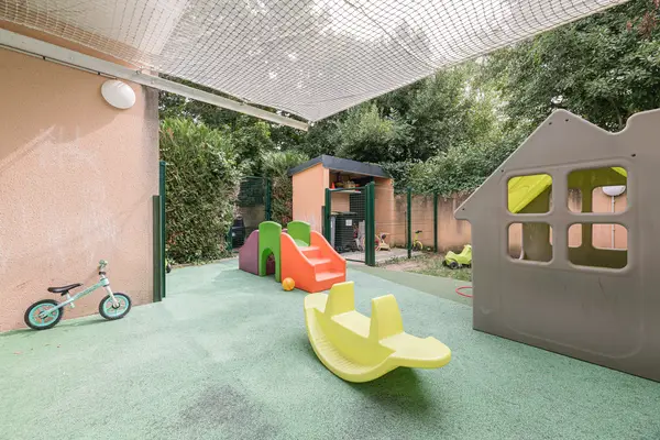 Installée dans un bâtiment lumineux de 142 m² intérieurs, la micro-crèche de Saint-Marceau dispose également d'un espace extérieur de 50 m² agréablement aménagé. Une maisonnette grise et un toboggan offrent aux tout-petits un espace de jeux en plein air propice aux premières explorations physiques. La crèche bénéficie en outre de la climatisation, une attention appréciable les étés orléanais. L'originalité de l'aménagement intérieur tient notamment à ce joli hublot dans la salle de repos, qui laisse filtrer une lumière douce propice à l'endormissement. Les espaces ont été pensés pour être modulables selon les âges : coins pour les bébés naissants, espace de motricité progressive pour les grands. Cette flexibilité permet à chaque tranche d'âge de cohabiter en toute harmonie. Les jeux à disposition couvrent un large spectre d'éveil : encastrements, porteurs, cubes de construction colorés et albums illustrés complètent l'offre sensorielle proposée quotidiennement. Estelle, éducatrice de jeunes enfants et directrice, développe un projet pédagogique axé sur la créativité et le lien avec les familles. La crèche est ouverte de 7h30 à 18h30.