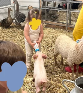 À la crèche du 15e, une petite fille donne le biberon à un cochon de la ferme miniature : un moment de soin et de douceur qui développe l'empathie, la délicatesse et l'éveil au monde animal des tout-petits.