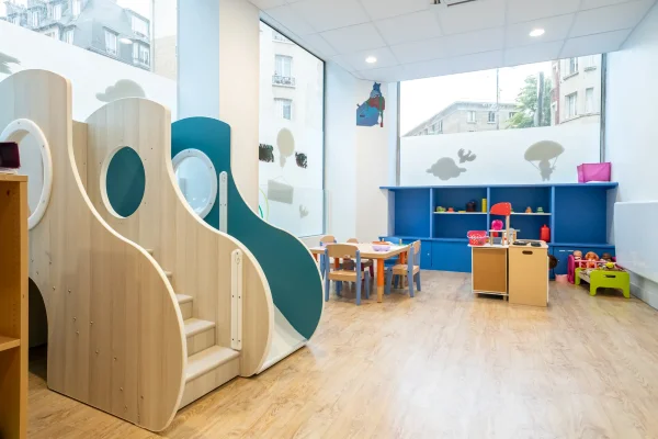 La micro-crèche Les Bébés Explorateurs de Marcadet, dans le 18e arrondissement de Paris, est une structure vivante et colorée de 115 m², où dix enfants s'épanouissent au rythme de leurs découvertes.