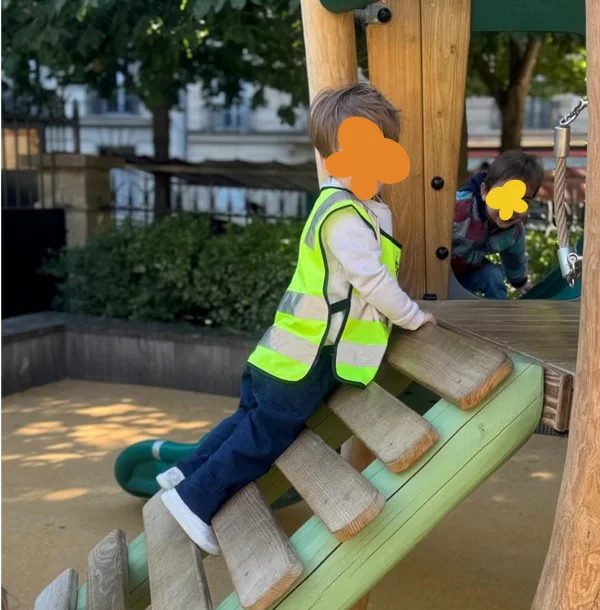 Sortie dans le square pour les explorateurs de Pigalle : grimper sur les structures adaptées, s'élancer vers le haut, oser… ces moments en plein air renforcent la motricité et la confiance en soi de chaque enfant.