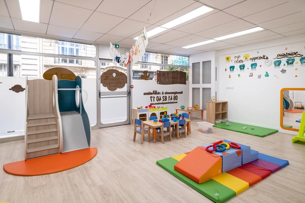 La micro-crèche Les Bébés Explorateurs de Victor Hugo, rue de la Pompe dans le 16e arrondissement de Paris, est un espace soigné et coloré de 153 m², où onze tout-petits explorent et s'épanouissent au quotidien.