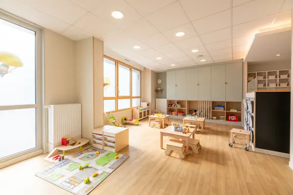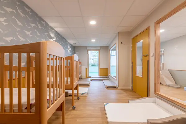 La micro-crèche de Vanves dispose de 120 m² intérieurs et d'un espace extérieur de 20 m² — une véritable chance pour une structure de ce format. Elle accueille 12 enfants de 2 mois et demi à 3 ans dans une ambiance chaleureuse et boisée.