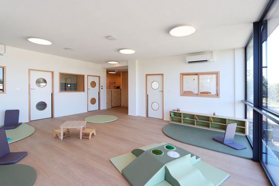 La crèche est aménagée pour faciliter l’accompagnement des professionnels auprès de vos enfants. Plusieurs espaces sont accessibles, offrant la possibilité aux touts petits de donner libre cours à leurs envies : créer, lire, jouer, grimper… Les locaux sont aménagés avec des matériaux spécifiques, qui répondent aux normes les plus rigoureuses de la Petite Enfance. Ils respectent la réglementation des ERP (Etablissement Recevant du Public) et sont agréés et contrôlés par la PMI (Protection Maternelle et Infantile). La crèche est dotée d’une structure de motricité en bois certifiée « made in France ». Vos enfants peuvent ainsi s’éveiller dans un établissement sécurisé et explorer leur environnement en toute confiance, sous le regard attentif des professionnels.